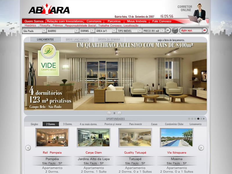 Aplicativo de busca avançada com diveros tipos de filtragem para escolha do imóvel, como localização, estágio da obra, preço, tamanho da área do imóvel, número de dormitórios, suítes e vagas, entre seus diferenciais e infra-estrutura.